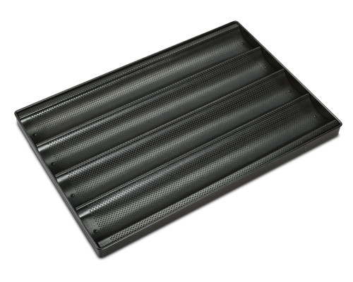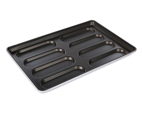 Moated style pans raise the bun moulds inside of the pan for improved baking or scoring allowing for excellent heat flow around the perimeter buns. They are stronger and more durable than a traditional pan design and can work with a center guide system.