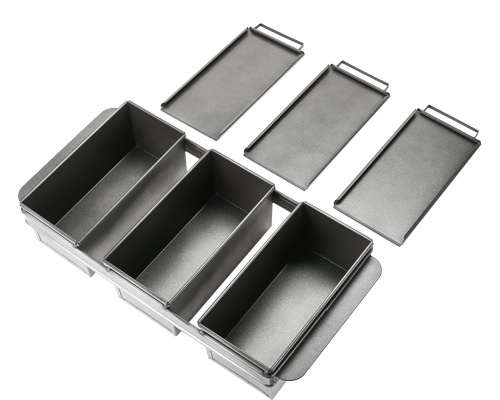 Pans are known for baking the type of bread known as pan loaf on an industrial scale. These pans comprise a plurality of baking molds and, in many cases, a plate acting as a cover of the pan.